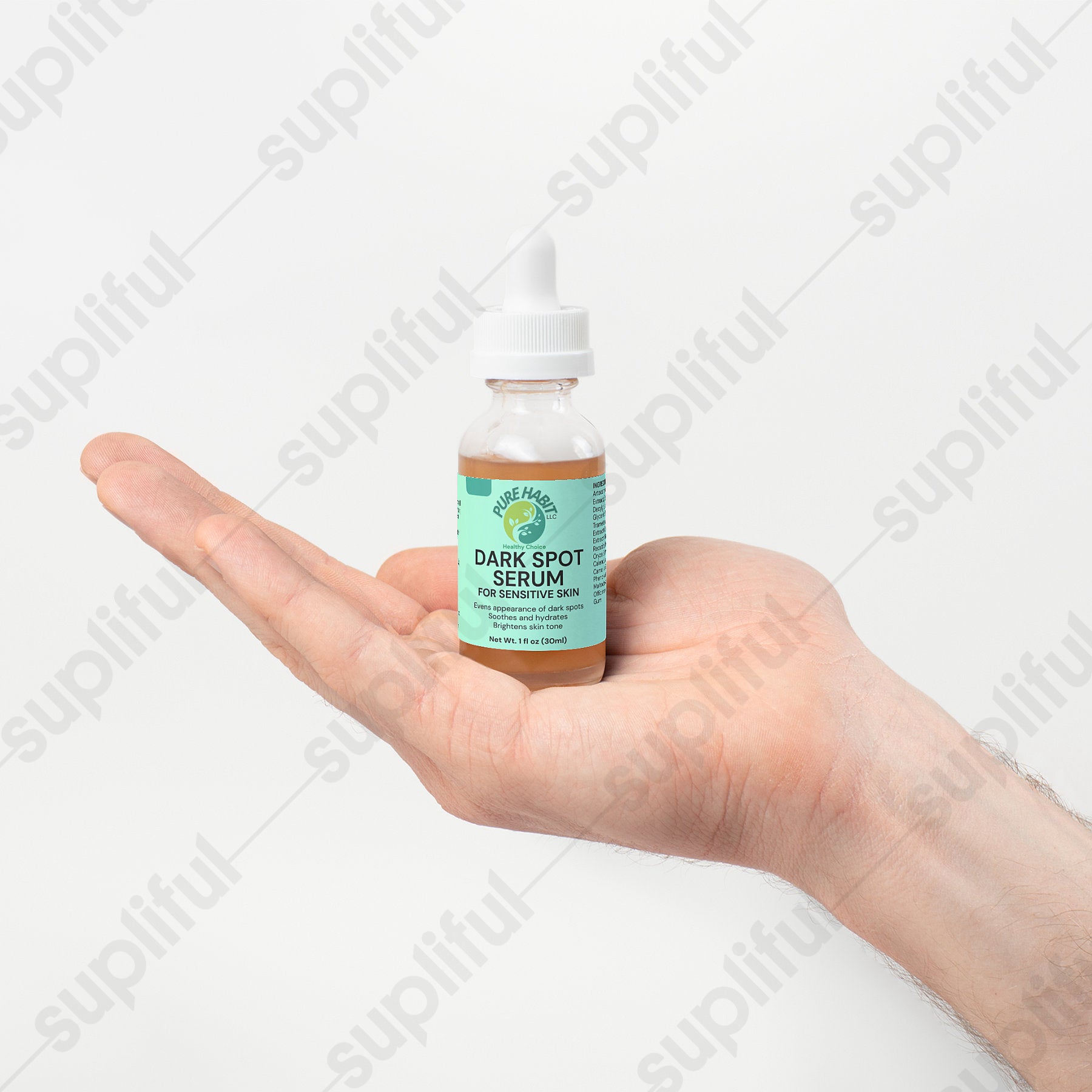 Introducing our Dark Spot Serum, designed for sensitive skin. Hydration sets the stage for targeted dark spot reduction. Natural extracts work together to brighten and even skin tone while providing soothing repair.
